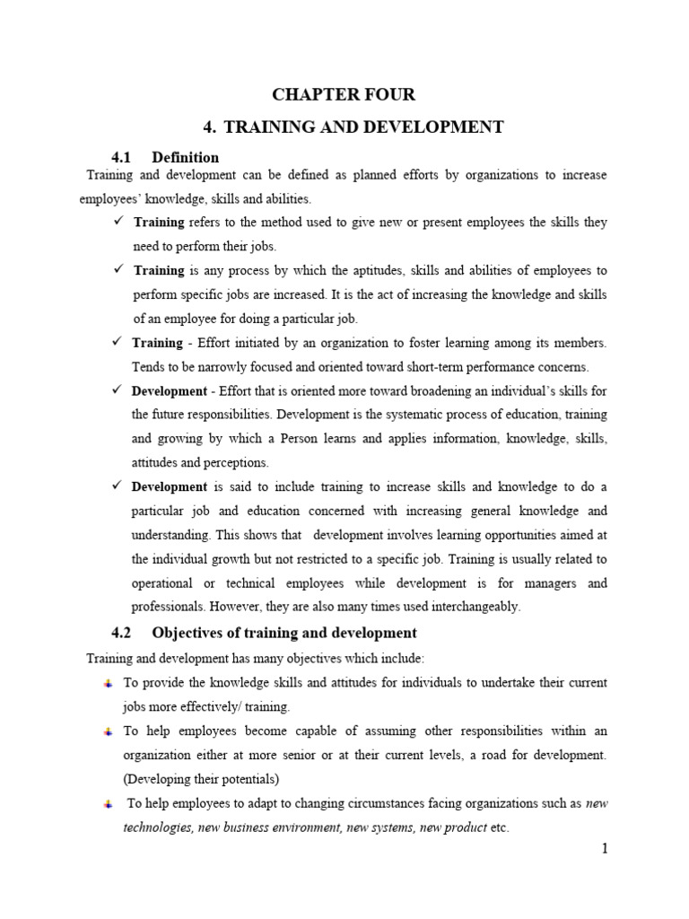 4.2 Objectives of training and development