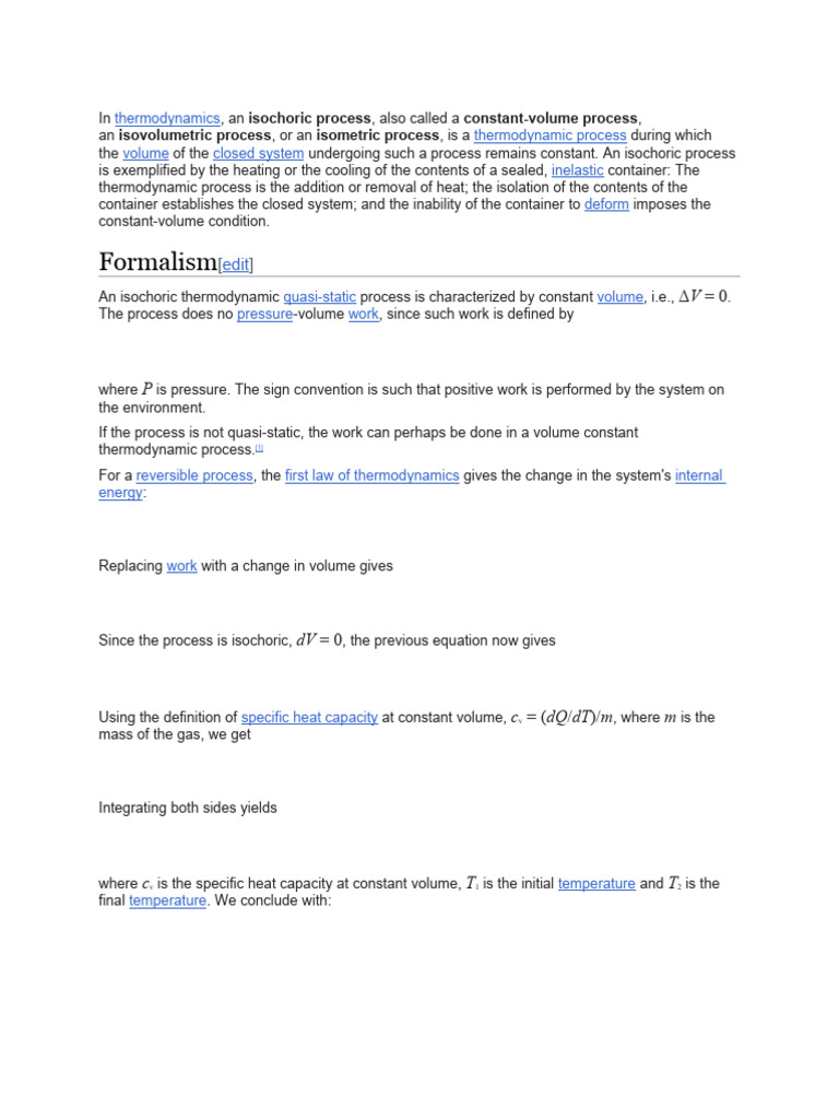 an isovolumetric process, or an isometric process, is a thermodynamic process during which