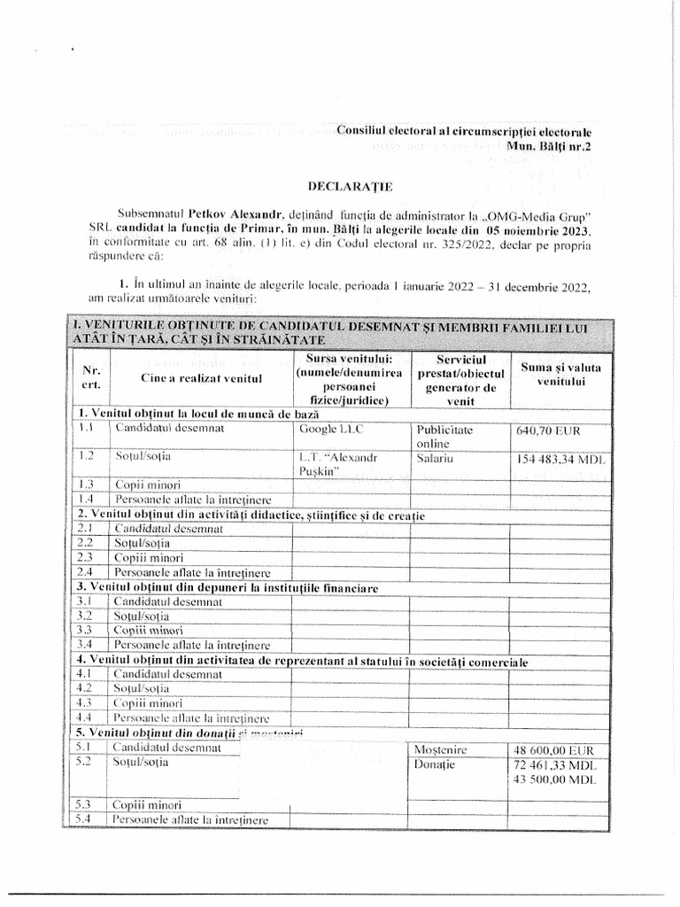 Subsemnstul Petkoy Alexandr, detingnd functia de administrator ta .OMG-Media Grup”
