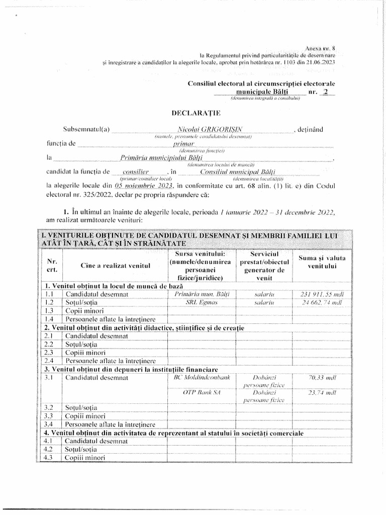 Subsemnatul(a) Nicolai GRIGORISIN -detinand