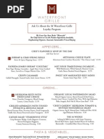 Asian Calamari flash fried with julienne candied ginger, Asian bulldog sauce, cashews & scallions PEI Mussels in a delicate white wine, cream sauce with tomatoes, shallots, garlic & basil Jumbo Lump Crab Cake with roasted corn, red bell peppers and chive nage Lentil Stew with whipped potatoes and pita chips Homemade Mozzarella with arugula salad tossed with walnuts, heirloom tomatoes & basil pesto Garbanzo Hummus with red pepper garlic dip served with fresh pita chips Lightly Fried Wild Mushroom Risotto with spicy tomato sauce Grilled Eggplant Tort with homemade mozzarella and a spicy tomato sauce Pulled BBQ Pork on hoe cakes with tobacco onions Spanish Style Ribs on the bone served topped with scallion and onion marmalade Baked Chicken Wings tossed in a sweet chili glaze with potatoes & Roquefort crumbles