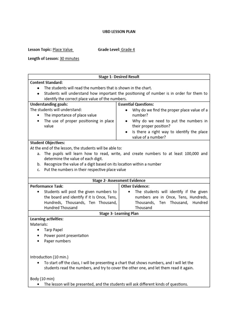 UBD LESSON PLAN