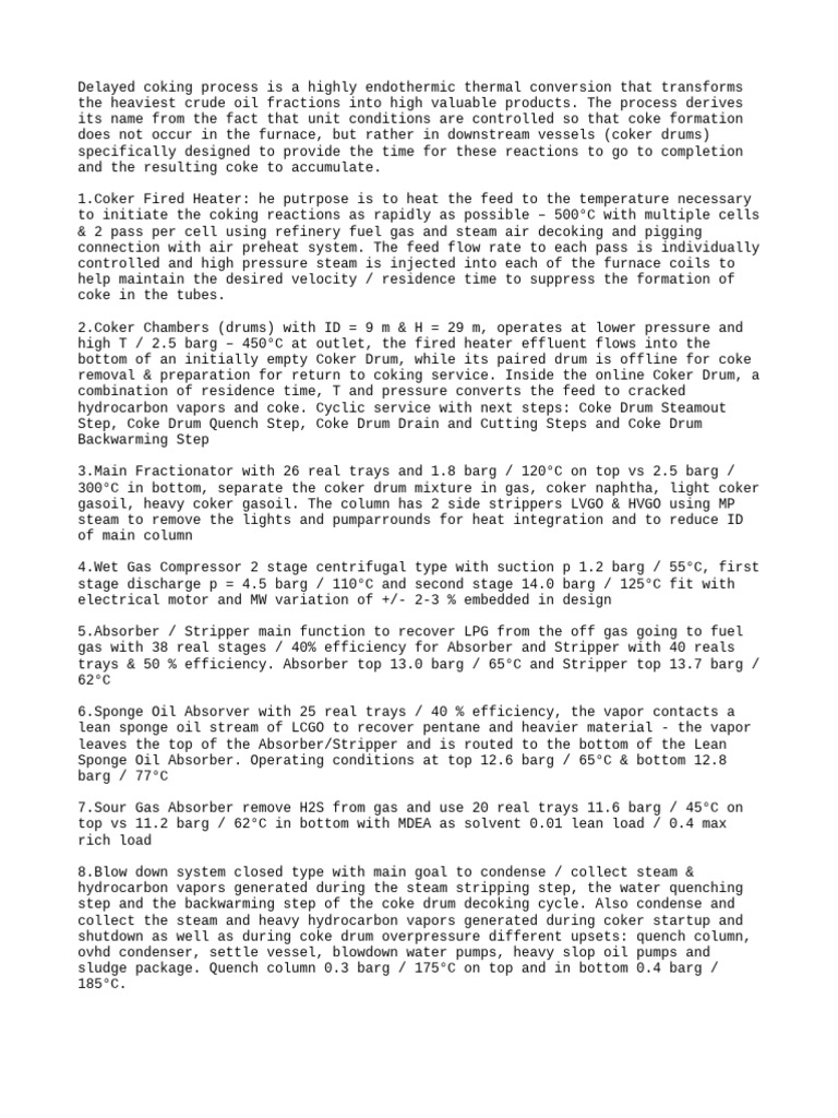 1.Coker Fired Heater: he putrpose is to heat the feed to the temperature necessary