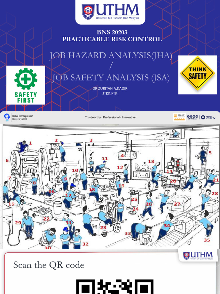 • Job safety analysis (JSA), also called as job hazard analysis (JHA)
