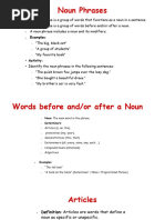 1. In Andrew Wyeths painting Christinas World, Christina kneels in the foreground. Her hands are grasping the dried grass. 2. The bus roared down the street. Its passengers grabbed for something to hang on to. 3. Their ags were at half-mast. The government ofces were closed for an hour. 4. The lake shimmered in the moonlight. Its clear surface was cool and inviting. 5. The lights went out. The audience suddenly became silent. 6. Doan sat in the chair. His sprained ankle rested on the stool in front of him. 7. Katerina skated away. The blades of her skates reected the colored lights of the arena. 8. Mark Spitz emerged from the water. His perfect dive was completed. 9. Their teeth are straightened. Their mouths are smiling. Middle-class children face the future with condence.