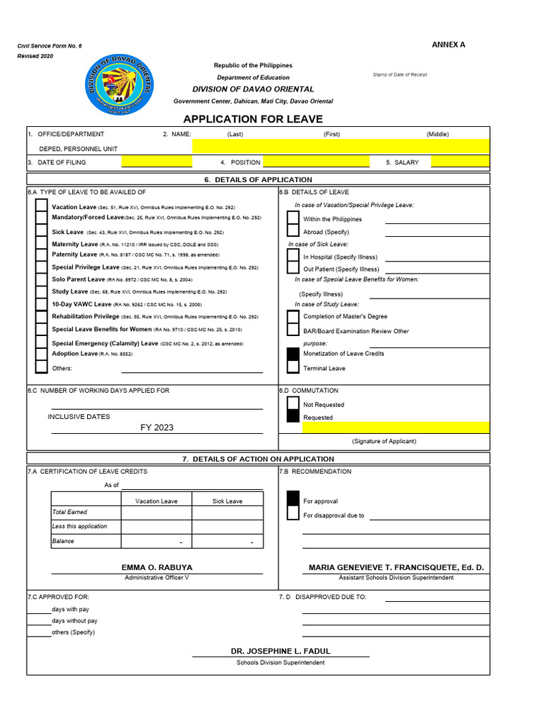 6.A TYPE OF LEAVE TO BE AVAILED OF 6.B DETAILS OF LEAVE