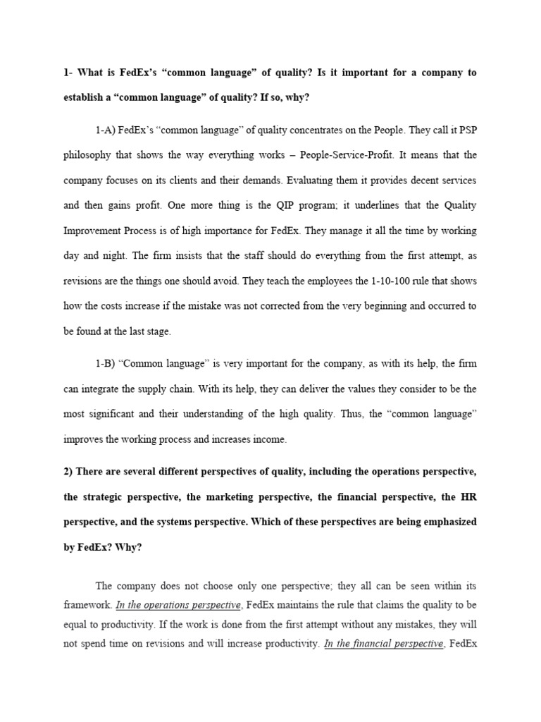 Though FedEx utilizes a mix of quality perspectives, HR perspective is loud. This is
