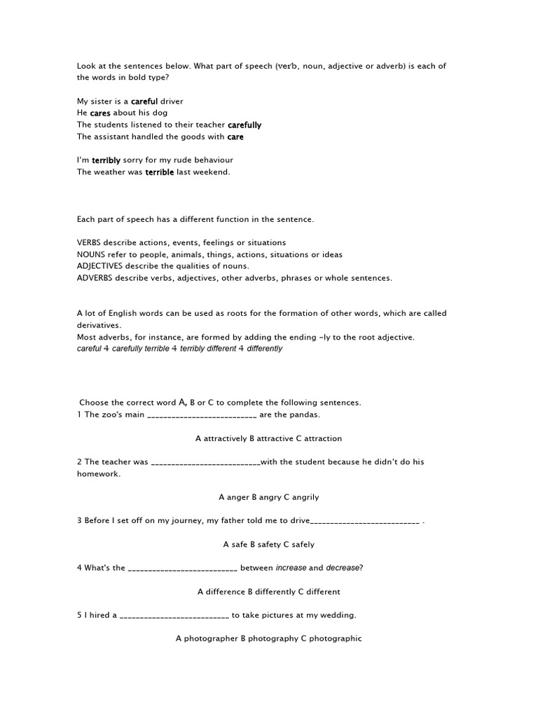 careful 4 carefully terrible 4 terribly different 4 differently