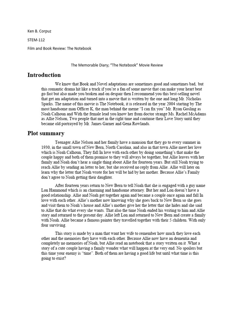 Film and Book Review: The Notebook