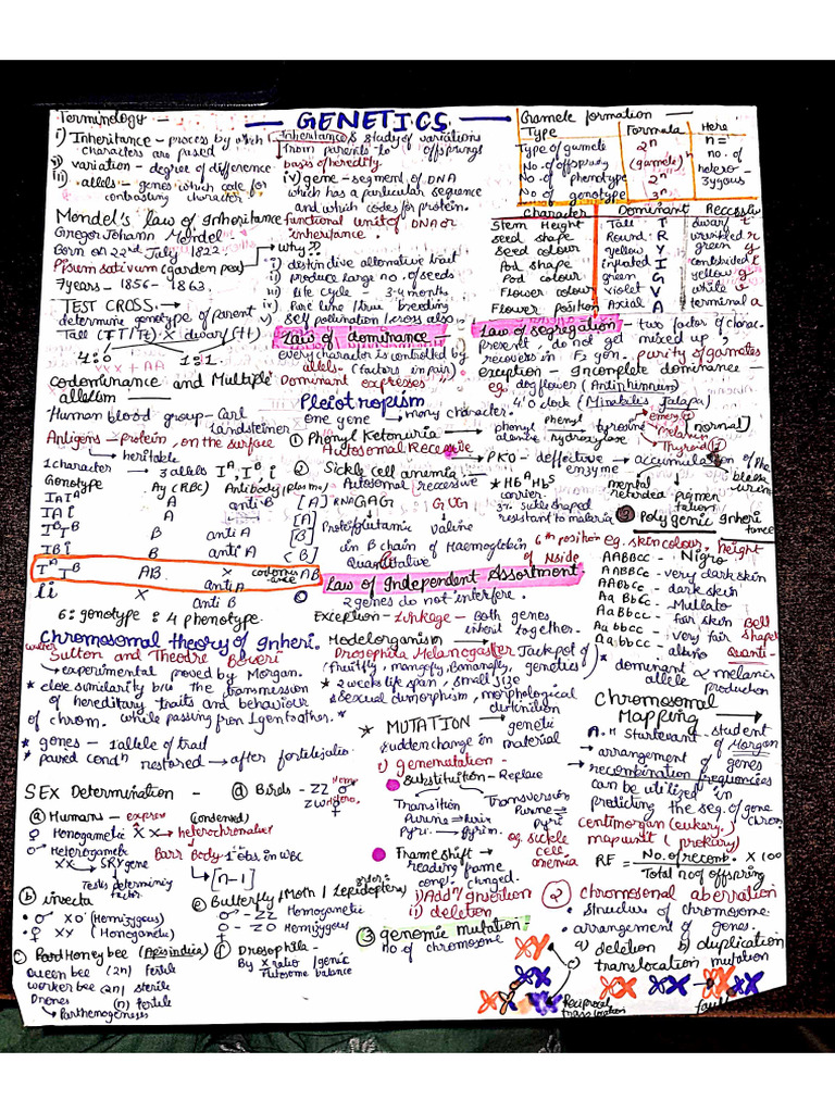 0 ratings0% found this document useful (0 votes) 201 views2 pagesOne Page Notes - Genetics Principles of Inheritance and Variations