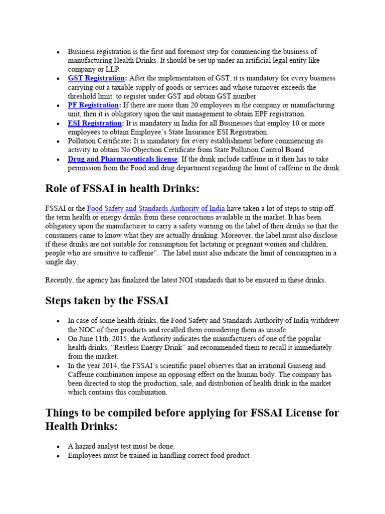 Drug and Pharmaceuticals license: If the drink include caffeine in it then has to take