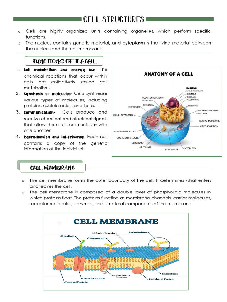 o The cell membrane forms the outer boundary of the cell. It determines what enters