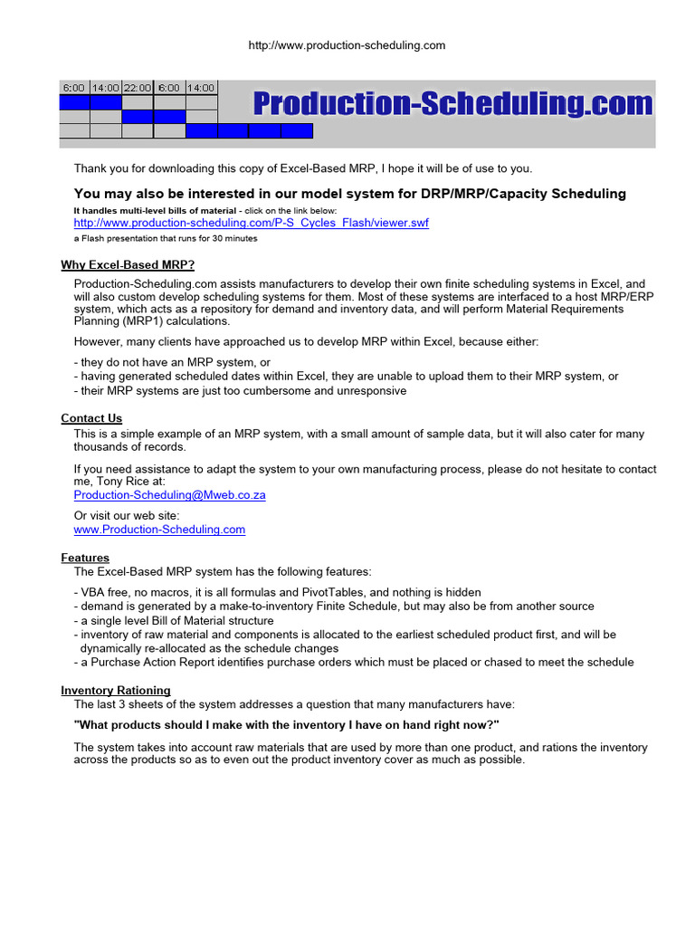 Thank you for downloading this copy of Excel-Based MRP, I hope it will be of use to you.