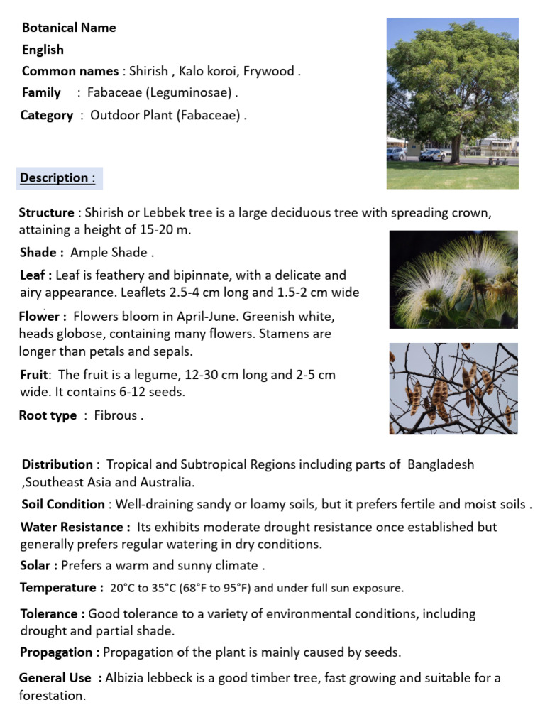 Botanical Name : Albizia lebbeck .