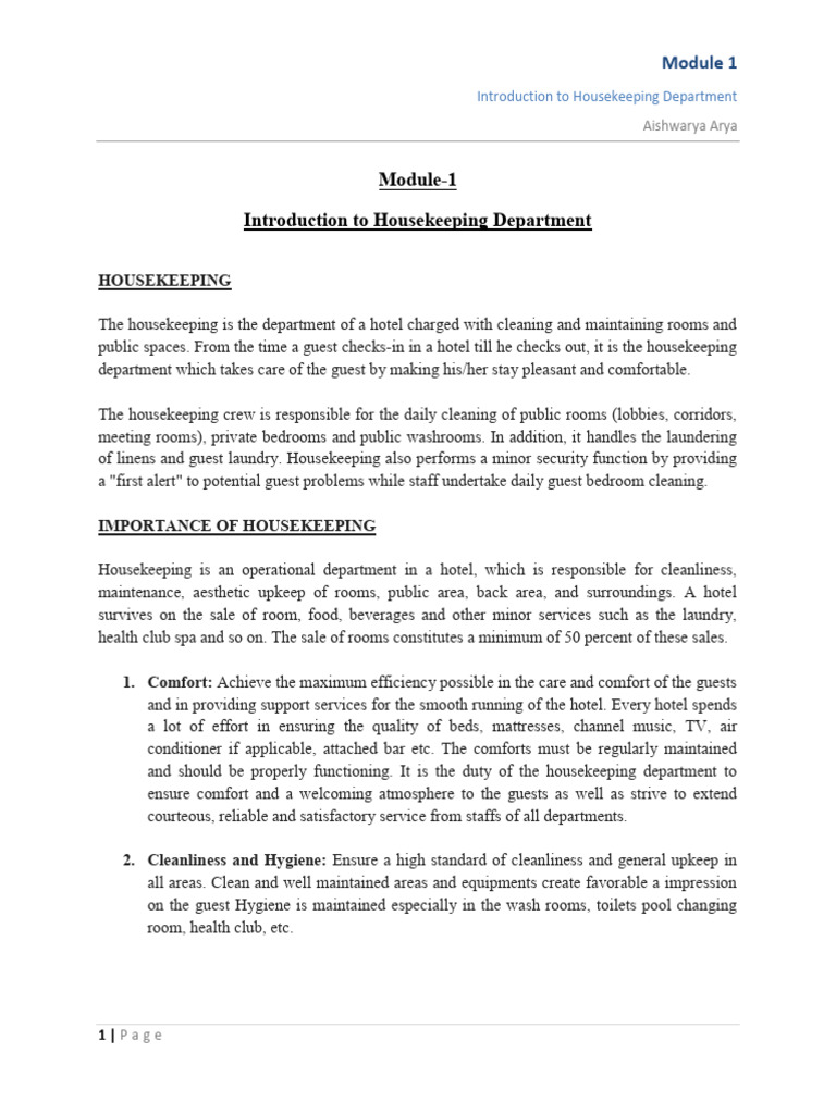 Introduction to Housekeeping Department