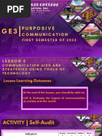 1. Identify aids and strategies for effective purposive communication; and