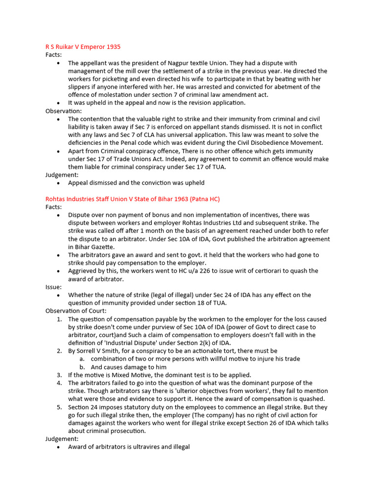 dispute between workers and employer Rohtas Industries Ltd and subsequent strike. The