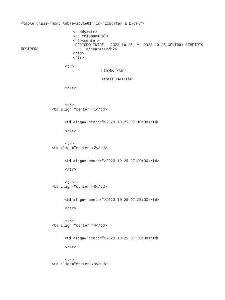 PERIODO ENTRE: 2023-10-25 Y 2023-10-25 CENTRO: SIMETRIC