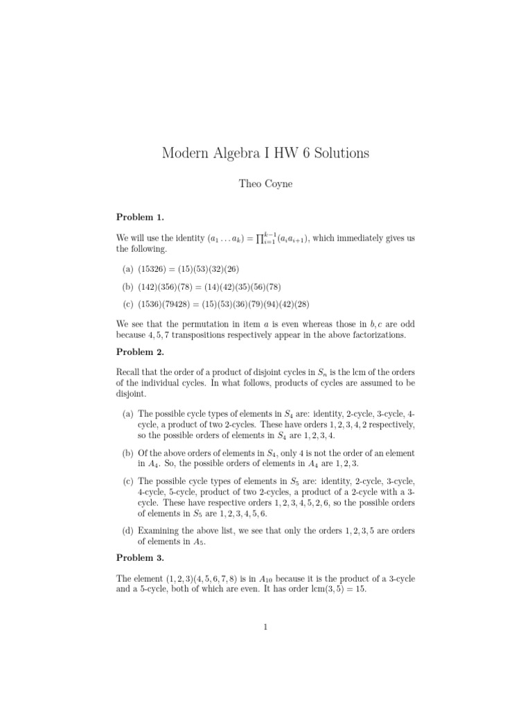 Modern Algebra I HW 6 Solutions