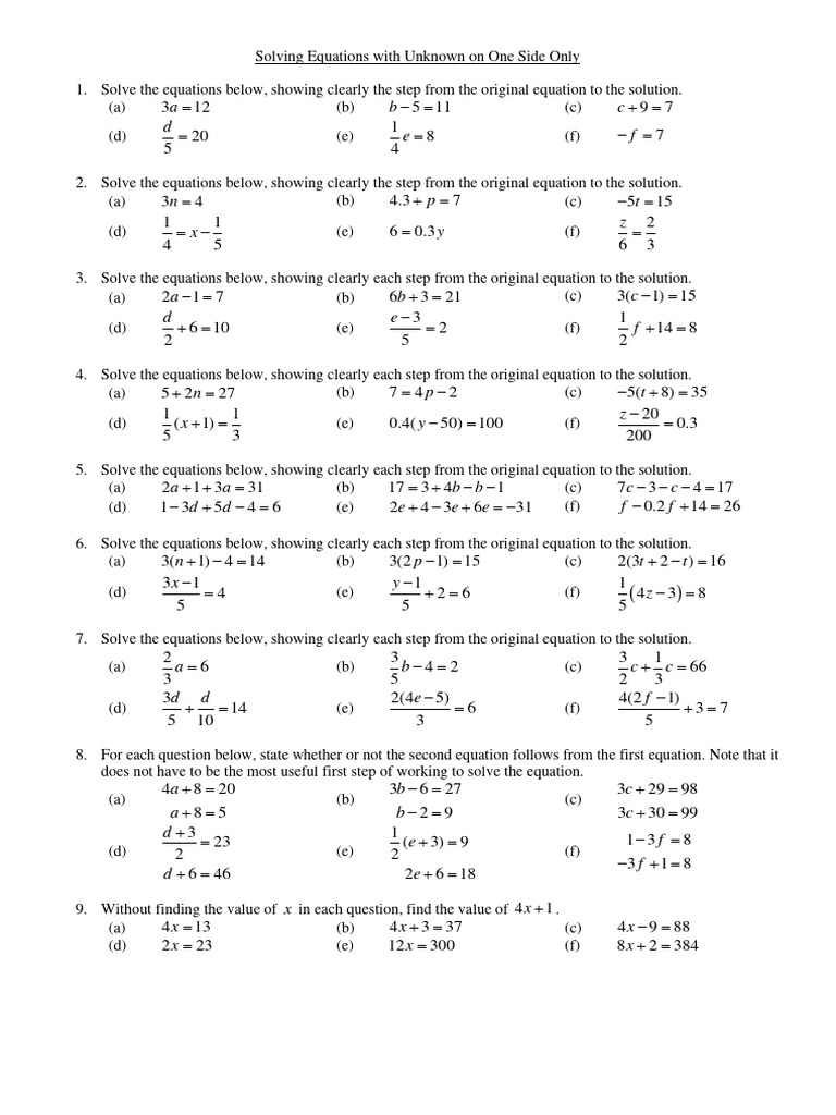 4. Solve the equations below, showing clearly each step from the original equation to the solution.