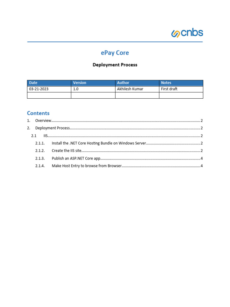 This document will be describing the process of deploying the ePay core builds to IIS