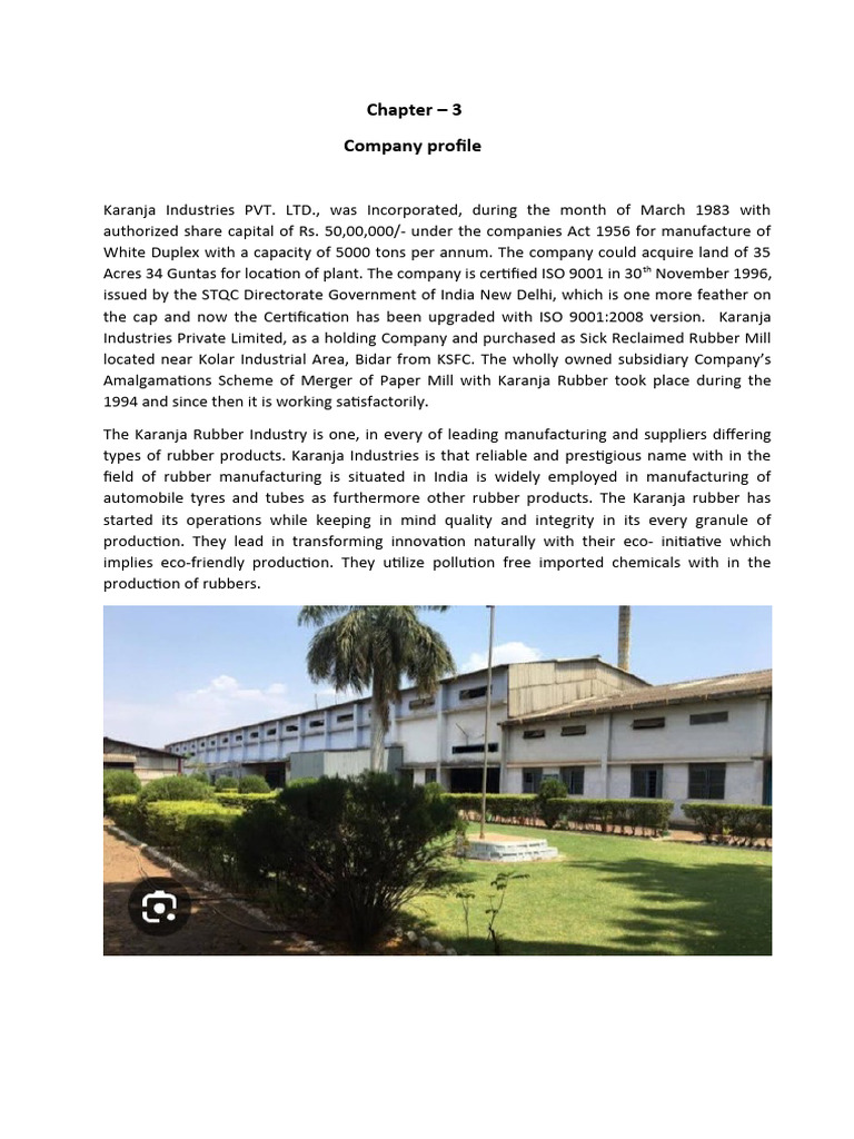 The Karanja Industries Private Limited (Rubber Division) located at Kolar Industrial Area, Bidar.