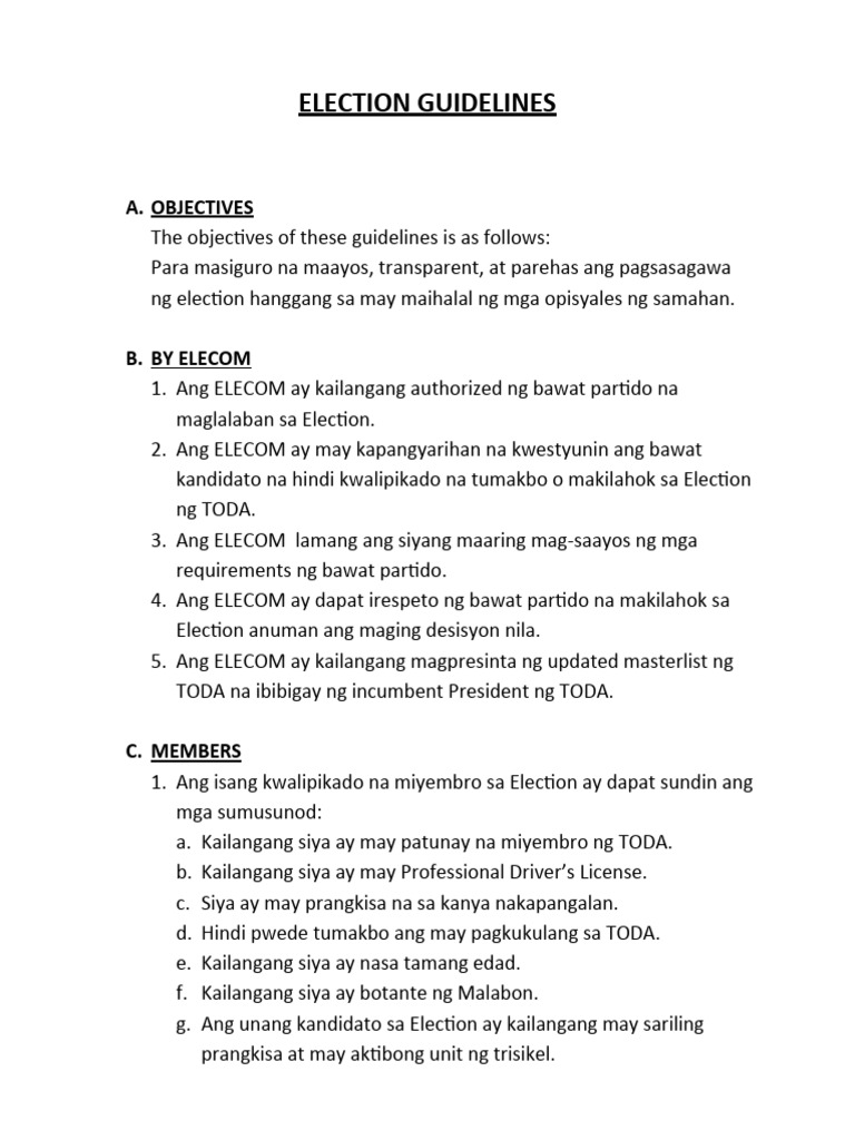 1. Ang isang kwalipikado na miyembro sa Election ay dapat sundin ang