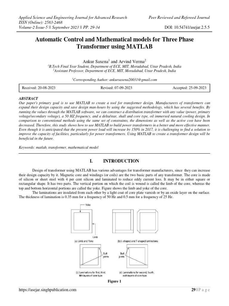 Applied Science and Engineering Journal for Advanced Research Peer Reviewed and Refereed Journal