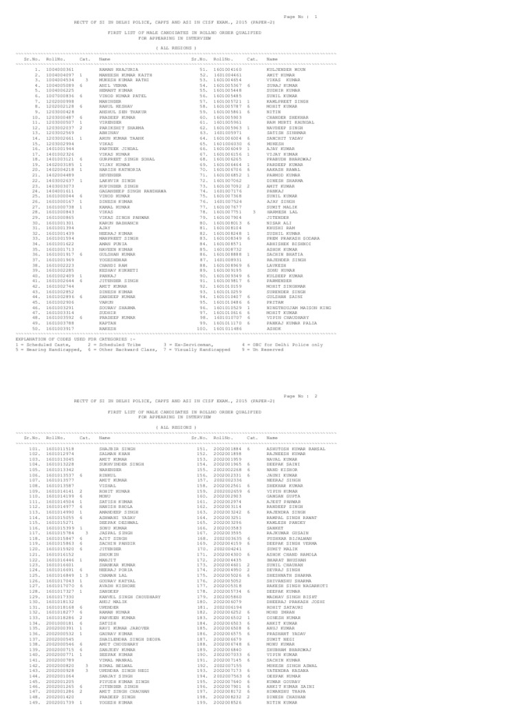 Sr.No. RollNo. Cat. Name Sr.No. RollNo. Cat. Name