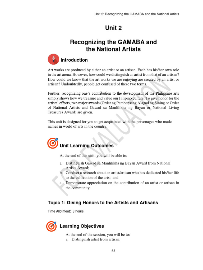 Activity 1. Go back to your community and look for the local artists or artisans.