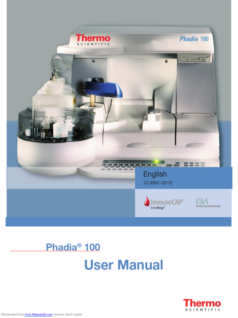 Phadia 100 User Manual, version 12. This version is valid for Phadia 100