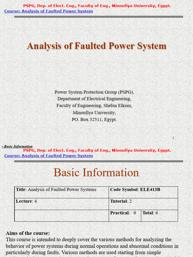 Title: Analysis of Faulted Power Systems Code Symbol: ELE413B