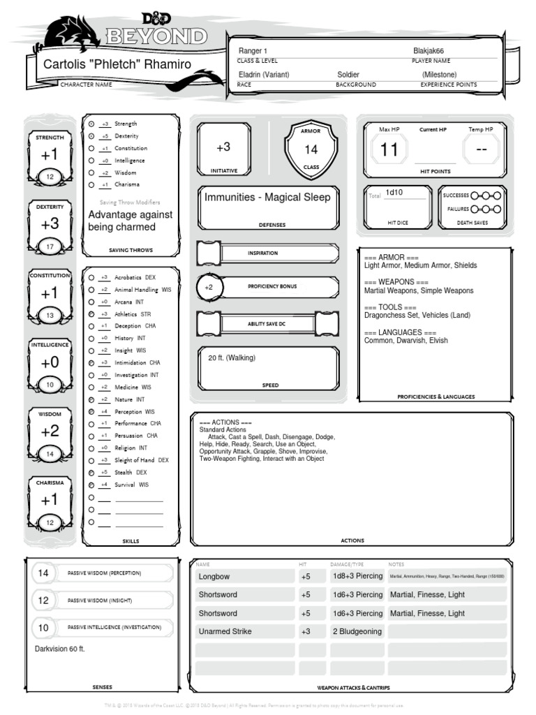 TM & © 2018 Wizards of the Coast LLC. ©2018 D&D Beyond | All Rights Reserved. Permission is granted to photo copy this document for personal use.