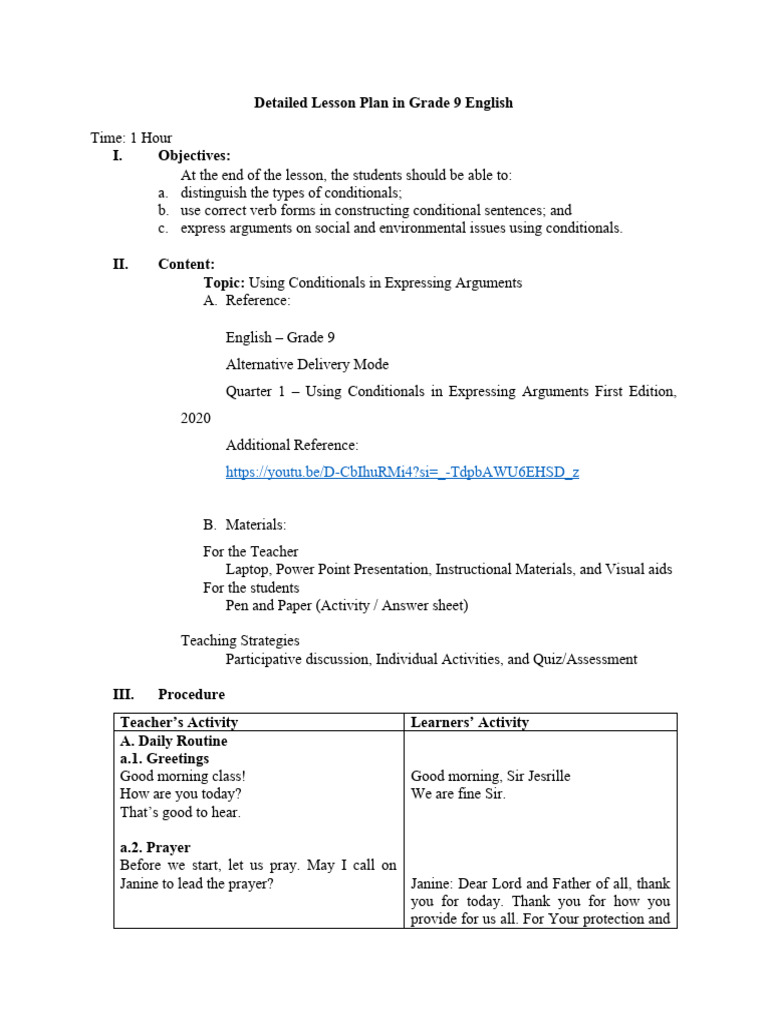 Detailed Lesson Plan in Grade 9 English