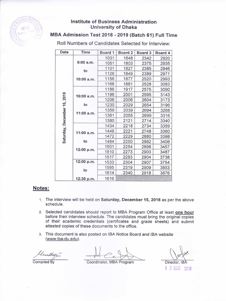 1. The interview will be held on Saturday, December 15, 2018 as per the above