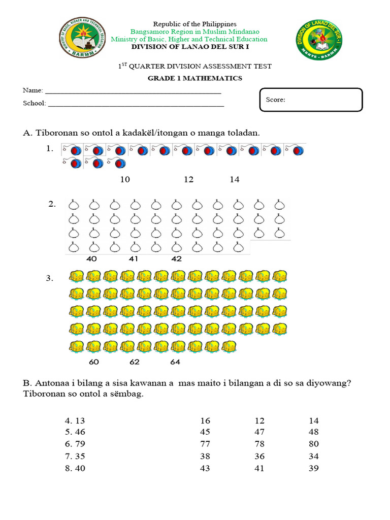 1ST QUARTER DIVISION ASSESSMENT TEST