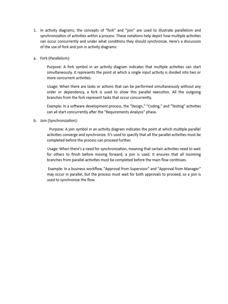 In activity diagrams, the concepts of "fork" and "join" are used to illustrate parallelism and