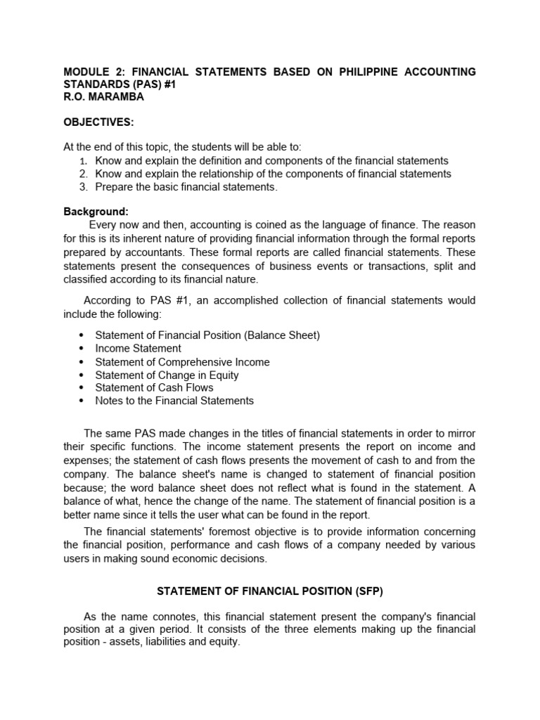 MODULE 2: FINANCIAL STATEMENTS BASED ON PHILIPPINE ACCOUNTING