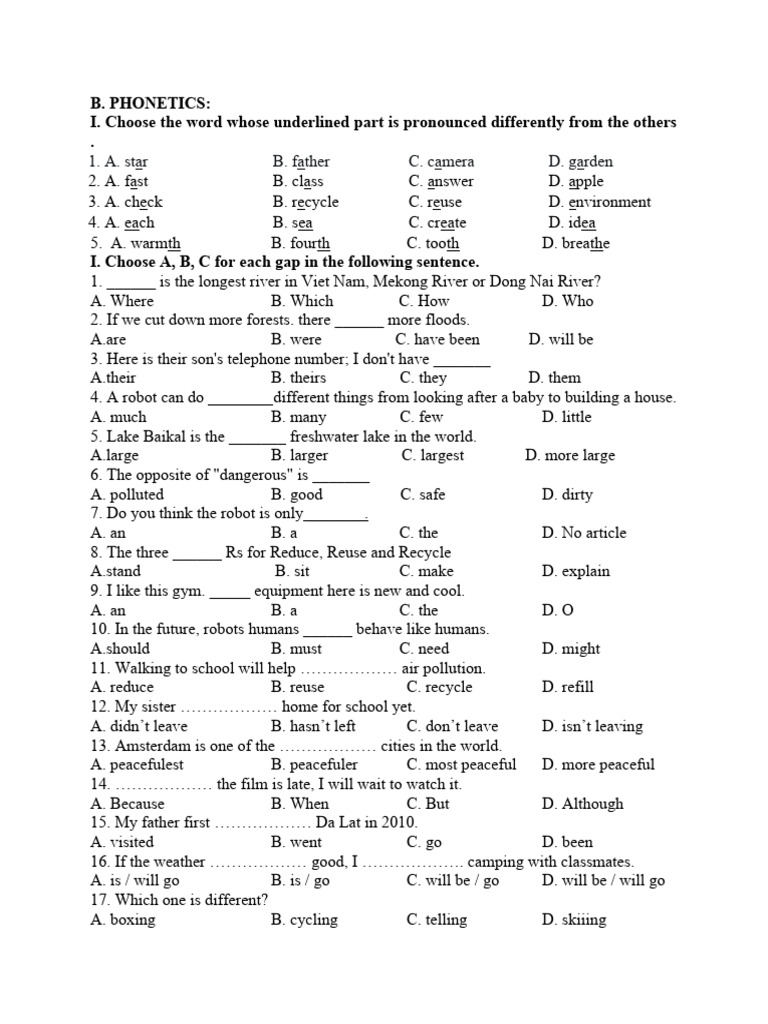 7. A. pollute B. polluted C. polluting