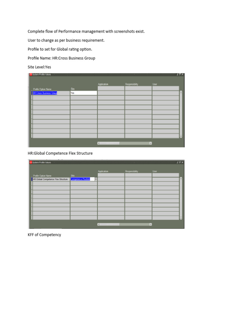 The competencies will be set up in the Oracle HRMS as a flexfield. The competence flexfield will