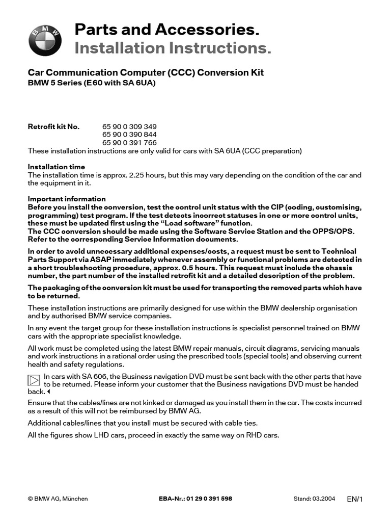 These installation instructions are primarily designed for use within the BMW dealership organisation