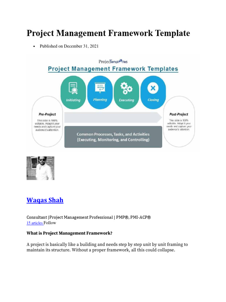 The project framework includes the processes, tasks, methodologies, and tools used to
