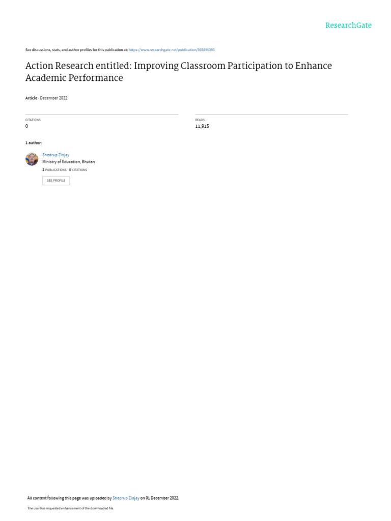 AR topic: Improving Classroom Participation to Enhance Academic Performance