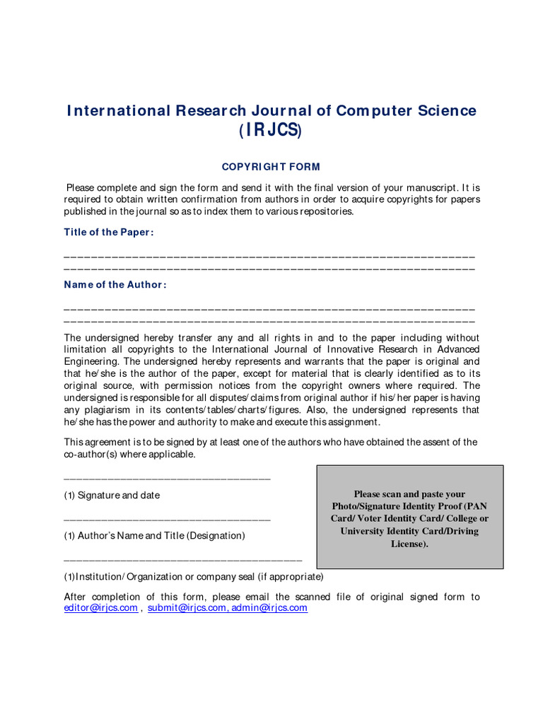 Please complete and sign the form and send it with the final version of your manuscript. It is