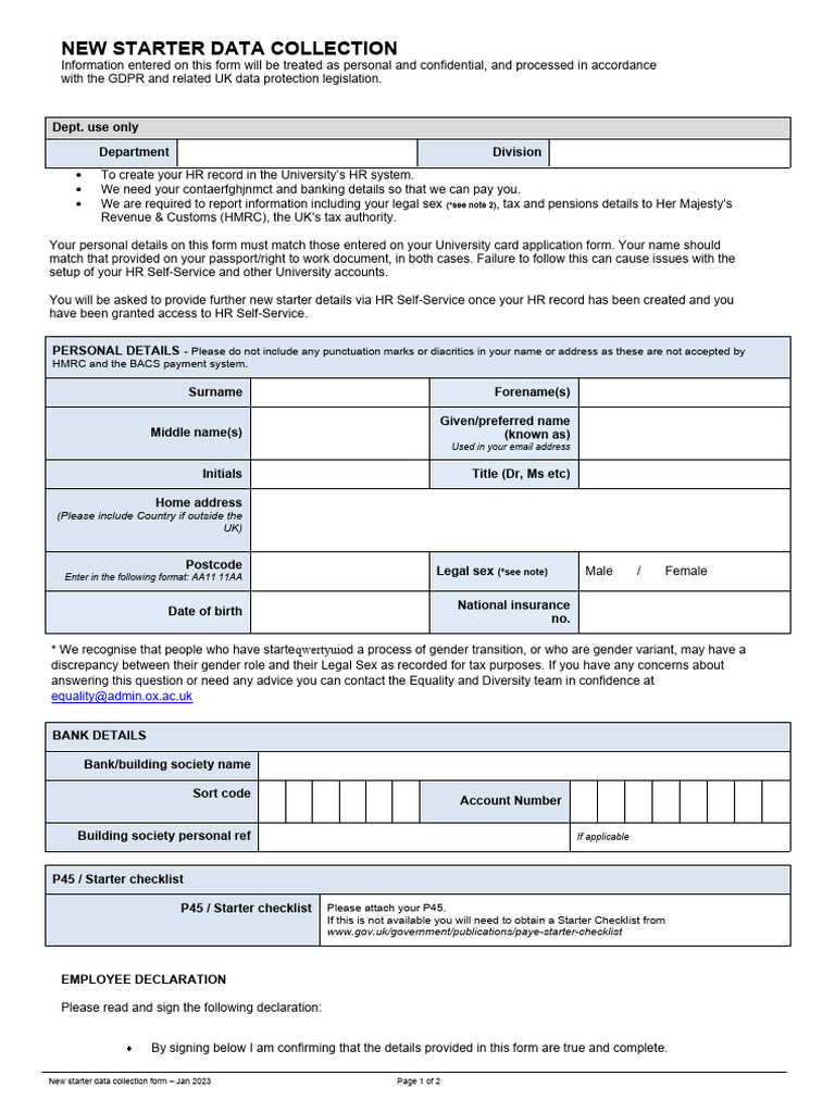 You will be asked to provide further new starter details via HR Self-Service once your HR record has been created and you