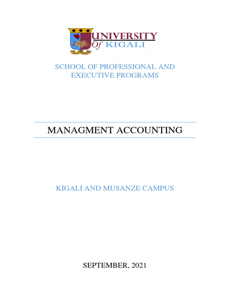 MANAGEMENT ACCOUNTING COURSE OUTLINE
