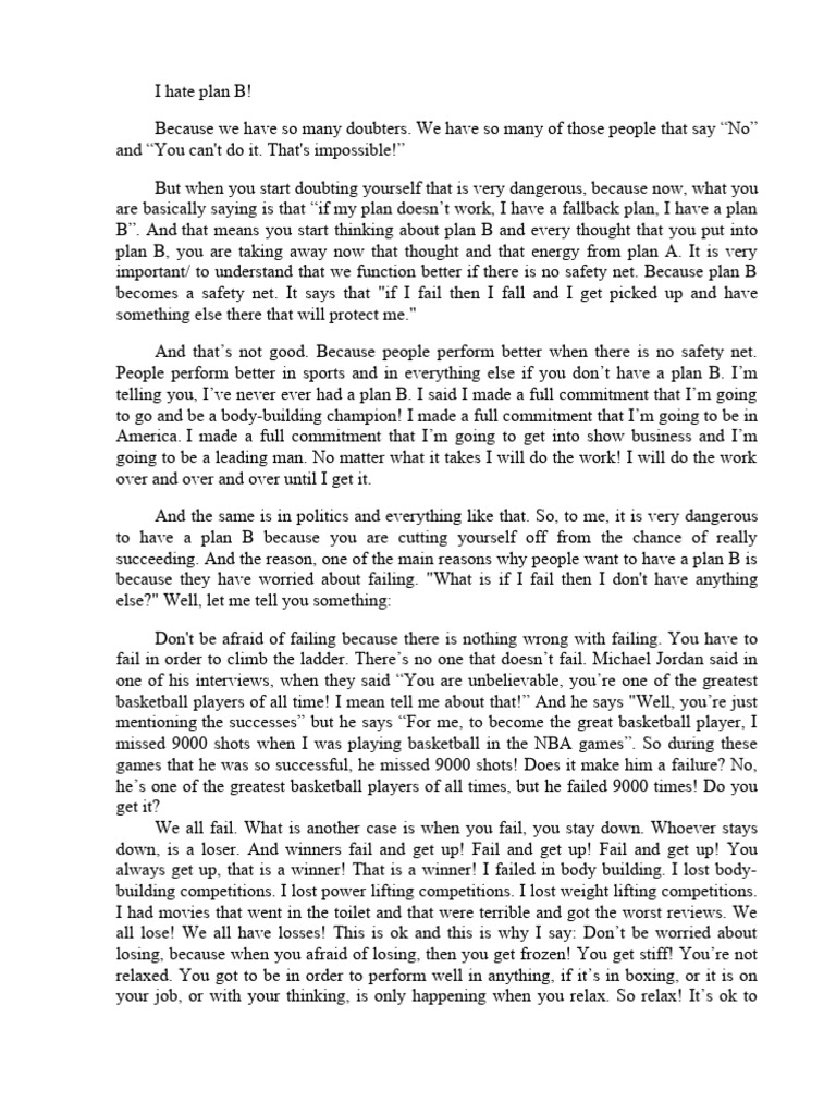 succeeding. And the reason, one of the main reasons why people want to have a plan B is