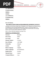 Pastor Licensing Application for Obed Kimindu