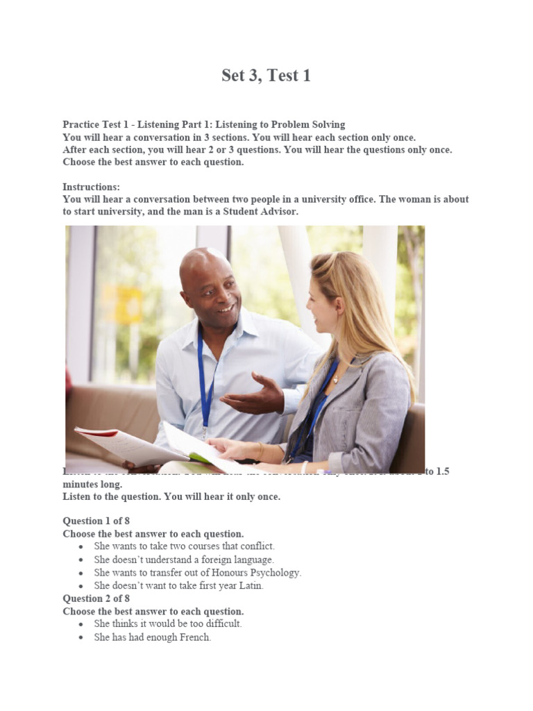 Listen to the conversation. You will hear the conversation only once. It is about 2 to 2.5