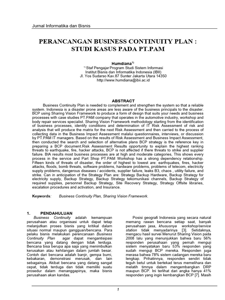 perumusan BCP yang sesuai untuk PT.PAM yang yaitu : Risk Assessment (RA), Business Impact
